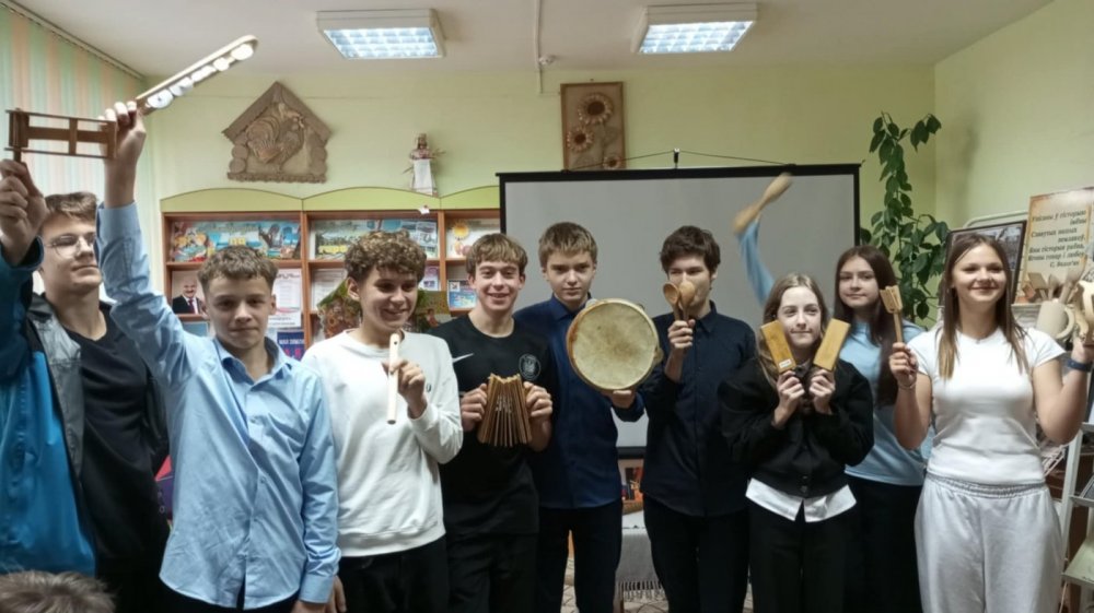 Для ребят были представлены тематический стенд и выставка музыкальных инструментов, созданных руками мастера.