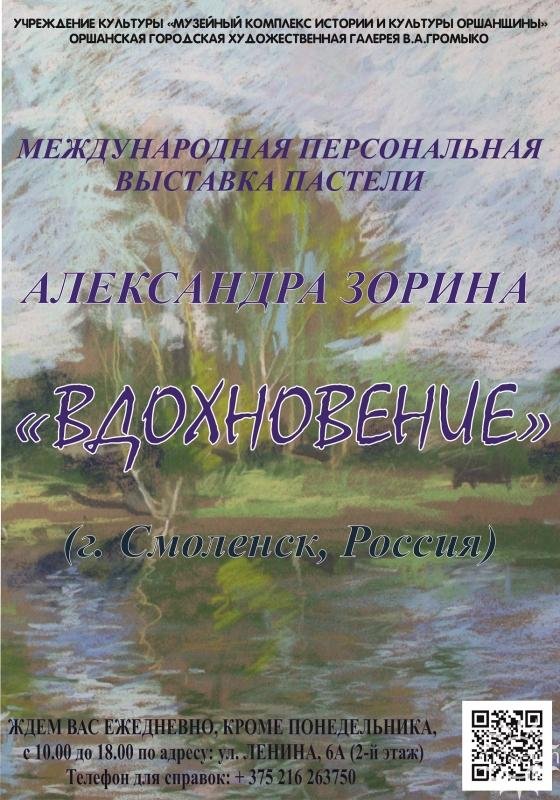 Оршанская городская художественная галерея В.А.Громыко до 30 октября приглашает посетить Международную персональную выставку пастели Александра Зорина «Вдохновение».